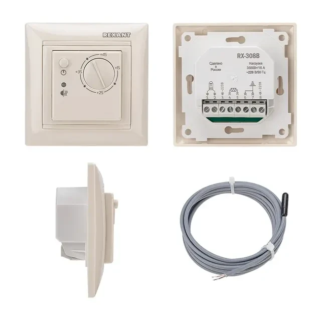 Терморегулятор механический RX-308B, совместим с Legrand серии Valena, бежевый REXANT
