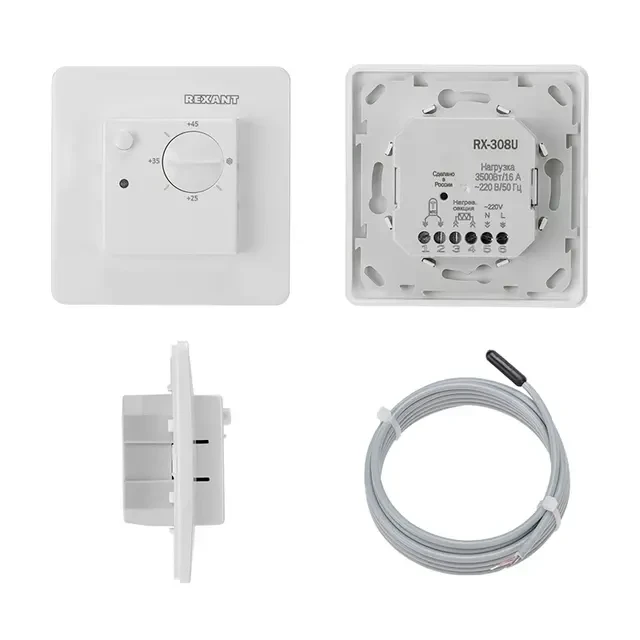 Терморегулятор механический RX-308U, совместим с Schneider серии Unica, белый REXANT