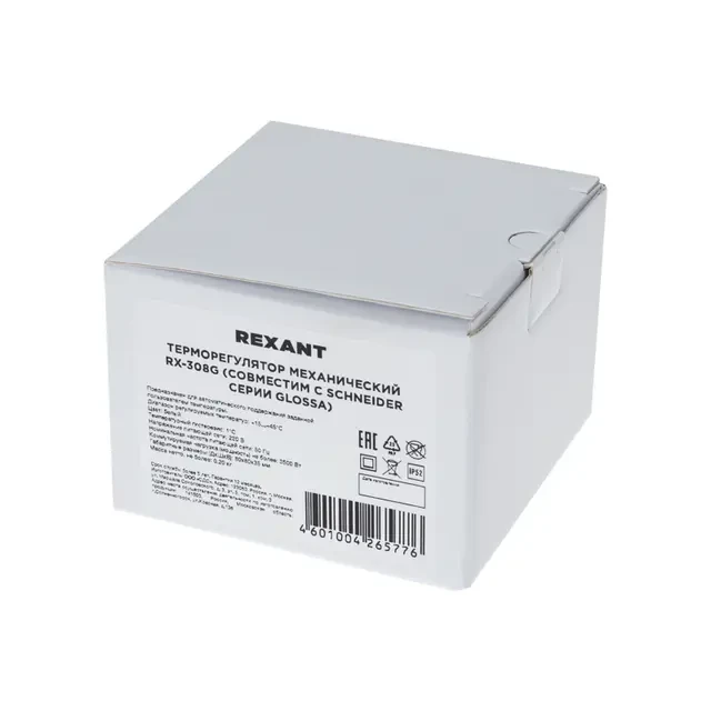 Терморегулятор механический RX-308G, совместим с Schneider серии Glossa, Atlas, Sedna, W59, белый REXANT