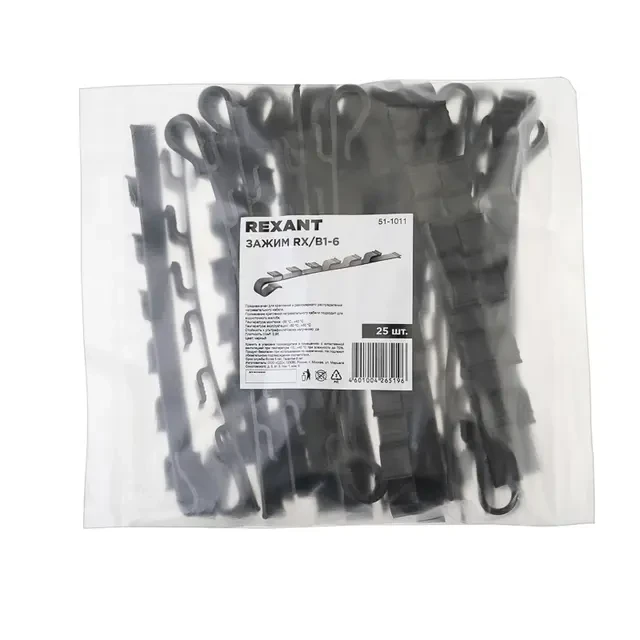 Зажим REXANT предназначен для крепления и равномерного распределения нагревательного кабеля. Крепежные зажимы упрощают и значительно ускоряют процесс монтажа кабеля на кровле и в элементах водосточной системы. Температура эксплуатации лежит в пределах от -80 °С до +60 °С. Изделия имеют стойкость к ультрафиолетовому излучению. Зажим можно закрепить двумя методами. Первый: сквозная фиксации зажима на кровельном покрытии с использованием кровельного самореза, заклепок и т.д. Второй: с помощью приклеивания зажима специальным клеем. Данный способ менее надежный, чем сквозная фиксация, но он позволяет исключить возможность протечки воды через отверстия от саморезов.