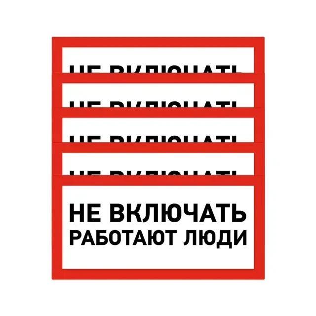 Знак электробезопасности (наклейка) «Не включать! Работают люди!» — это информационный знак, который сообщает об опасности проведения работ. Предназначен для размещения на дверях и стенах помещений, на дверцах электрощитовых шкафов. Наклейка используется для предупреждения и информирования окружающих, а также для организации мест работы электромонтажных бригад. Наносится на ровную сухую поверхность. Изделие изготовлено на основе самоклеящейся пленки, разработанной специально для использования на информационных знаках как внутри помещений, так и на улице. Комплект набора: 1 наклейка размером 10х20 см.