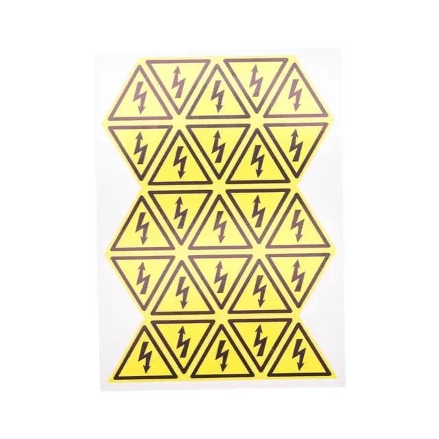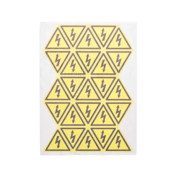 Знак электробезопасности (наклейка) «Опасность поражения электротоком» – это информационный знак, который сообщает об опасности поражения электрическим током. Предназначен для размещения на электрооборудовании, приборах, опорах линий электропередачи, дверцах силовых щитков, электротехнических панелях и шкафах, а также на ограждениях токоведущих частей оборудования, механизмов и приборов. Наклейка используется для предупреждения и информирования окружающих, а также для организации мест работы электромонтажных бригад. Наносится на ровную сухую поверхность. Изделие изготовлено на основе самоклеящейся пленки, разработанной специально для использования на информационных знаках как внутри помещений, так и на улице. Комплект набора: 100 наклеек размером 25х25х25 мм (4 листа, по 25 наклеек на каждом).