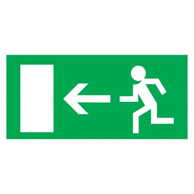 Табличка «Направление к эвакуационному выходу налево» предназначена для обозначения направления движения к выходу в случае чрезвычайной ситуации. Ее размещают на стенах и ограждениях, а также используют в составе комбинированных знаков безопасности. Такие таблички обязательны для использования на предприятиях, в учреждениях и общественных зданиях, с целью оперативно информировать окружающих о безопасных путях эвакуации. Табличка выполнена из прочного материала, устойчива к механическим воздействиям, солнечным лучам и перепадам температуры. Устойчива к смазыванию, сохраняет свою яркость и четкость даже при длительной эксплуатации. Монтаж осуществляется легко с помощью двустороннего скотча или клея «Жидкие гвозди». Возможна установка на саморезы или гвозди.