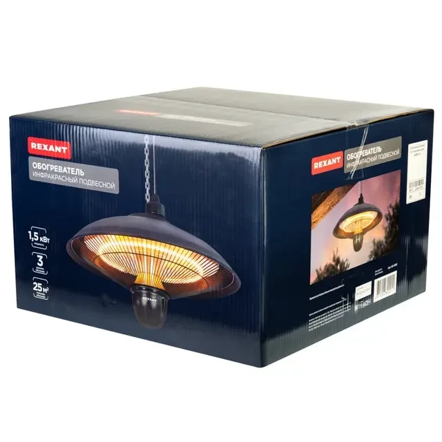 Обогреватель электрический инфракрасный подвесной в корпусе из нержавеющей стали 1,5кВт, 3 режима обогрева, механическая регулировка REXANT