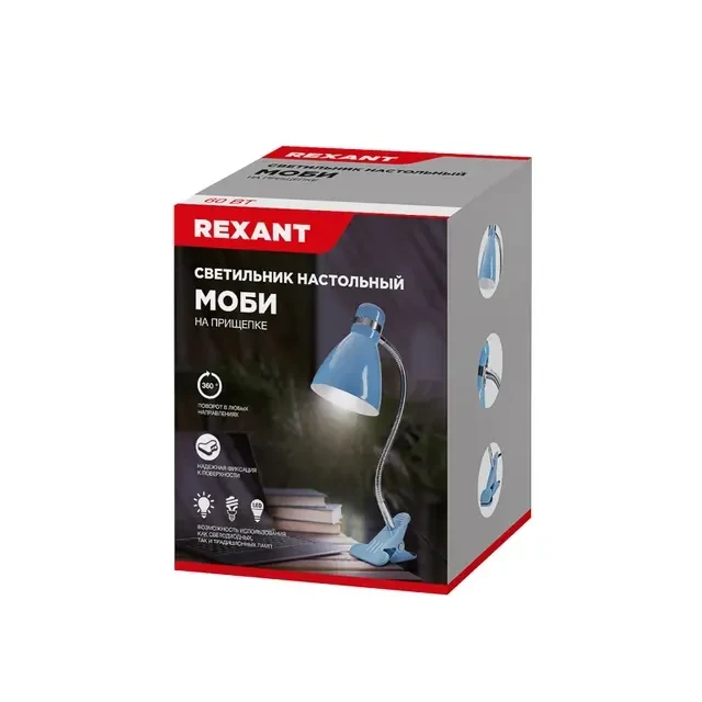 Светильник на прищепке REXANT используется для освещения рабочего места, места чтения или учебы. Благодаря лаконичному дизайну и мягкому приятному свечению светильник создаст неповторимый уют как в офисе, так и дома. Корпус светильника выполнен из высококачественного металла. Зажим-прищепка позволяет фиксировать светильник как на стол, так и на спинку кровати и на прочие предметы мебели, а гибкая стойка позволяет менять направление света на 360°. Светильник с керамическим патроном Е27 используется со всеми видами ламп: с лампами накаливания до 60 Вт, с энергосберегающими и светодиодными лампами. Работает от стандартной сети 220 В и не требует дополнительных элементов питания. Светильники REXANT – это высокое качество освещения по приятной цене. Максимальная мощность лампы: 60 Вт Напряжение: 220 В Тип цоколя: Е27 Встроенный механический выключатель Размеры: 155х340х108 мм Тип крепления: зажим-прищепка Цвет: летнее небо Класс электробезопасности: II Тип питания: от сети 220 В Длина шнура: 1 м