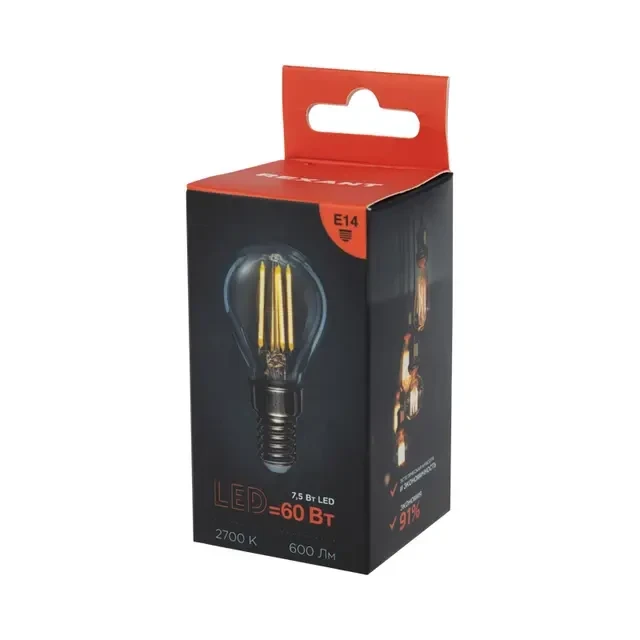 Филаментная лампа (светодиод. нить вместо нити накала)
