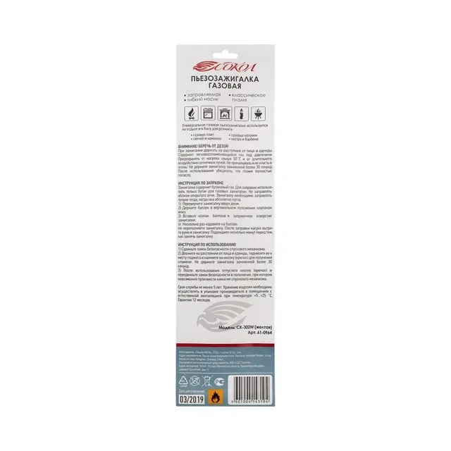 Описание СОКОЛ 61-0964 - Купить Бытовая газовая пьезозажигалка
