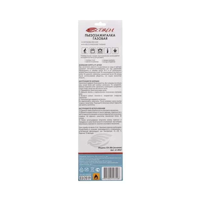 СОКОЛ 61-0969 - Купить Бытовая газовая пьезозажигалка