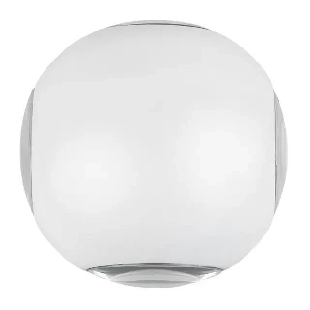 Универсальный светодиодный светильник Ball для использования вне зданий (на фасадах) и внутри зданий (на стенах), во влажных комнатах, с целью декоративной подсветки и для организации основного освещения. Корпус светильника выполнен из литого под давлением алюминия, покрытый порошковой краской. Внутри корпуса расположена светодиодная плата с источником питания от сети 220 В. Оптическая часть светильника выполнена таким образом, что на освещаемой стене образуются четыре световых луча с углом 90 градусов. На стене из светильников возможно выстраивать световые композиции, улучшая и повышая привлекательность и восприятие окружающей обстановки. Отличается легким монтажом и долгим сроком службы. Технические характеристики: Тип источника света: LED Световой поток: 420 Лм Мощность светильника: 6 Вт Коррелированная цветовая температура (в сфере): 3000 K Переменный/постоянный ток (AC/DC): AC Напряжение питания: 220 В Класс защиты от поражения током: II Температурный режим: -30...+40 °С Цвет корпуса: белый Коэффициент пульсации: <5% Класс энергоэффективности: A Гарантия: 2 года Материал корпуса: алюминий Тип крепления: настенный Размеры, мм (ДхШхВ): 90х90х85