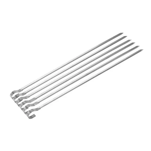 Набор острых шампуров из нержавеющей стали подходит для приготовления на огне блюд из свинины, говядины, курицы, овощей и др. Предназначены для использования на любых видах мангала, в гриле, тандыре. Набор удобно применять на даче и во время отдыха на природе, благодаря подставке, которая поставляется в комплекте. Шампуры заточены аккуратно и ровно, не царапаются и не гнутся при транспортировке. Для удобства хранения набор поставляется в чехле размером 470х100мм. Размер шампуров – 370х10х0,8мм.