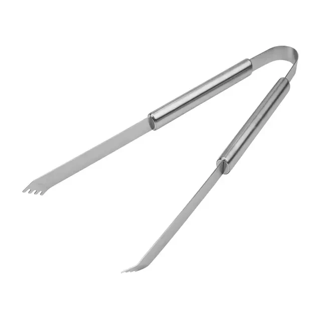Щипцы для гриля СОКОЛ выполнены из прочной нержавеющей стали, которая обладает высокой устойчивостью к коррозии и не вступает в реакцию с холодными и горячими продуктами, полностью сохраняя их вкусовые качества. Изделие предназначено для приготовления пищи на мангале, гриле, костре. Позволяет равномерно прожаривать ломтики со всех сторон. Ручки щипцов не нагреваются, поскольку выполнены из термостойкого металла. Это поможет уберечь руки от жара и огня. Для удобства захвата продуктов питания края щипцов имеют волнообразную форму. Размер изделия: 440х70х1,5 мм. Толщина ручки: 32 мм.