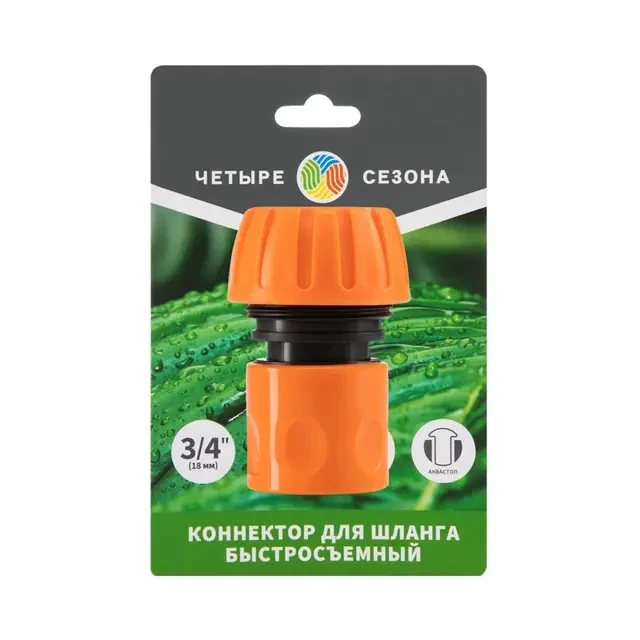 Коннектор для шланга, быстросъемный 3/4" с аквастопом ЧЕТЫРЕ СЕЗОНА
