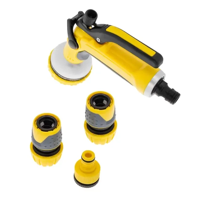 Пистолет-распылитель представляет собой садовый аксессуар, предназначенный для полива растений и почвы. Выполнен из качественного и прочного пластика, устойчивого к воздействию внешних факторов. Устройство оснащено эргономичной ручкой, благодаря которой пистолет удобно и комфортно держать в руке. Имеет 10 режимов подачи воды, регулируемых поворотной головкой. На пистолете предусмотрен фиксатор, позволяющий зафиксировать курок и не зажимать его пальцами в процессе полива. Изделие надежно и герметично крепится к шлангу при помощи универсального соединителя, расположенного на конце пистолета. Комплектуется двумя коннекторами. Используемые материалы: ABS-пластик, полипропилен и термопластичная резина.