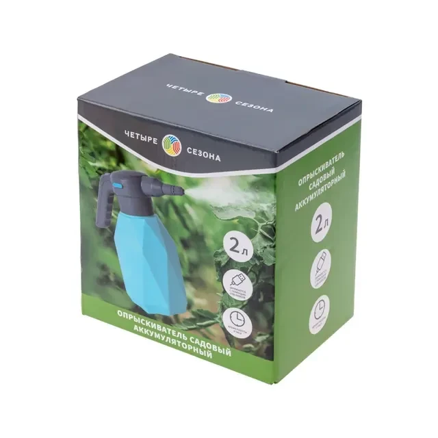 Опрыскиватель представляет собой устройство, применяемое для опрыскивания и обработки растений. Изделие также позволяет с удобством наносить моющие средства на различные поверхности и увлажнять помещения. В его емкость можно залить любую жидкость. Объем опрыскивателя составляет 2 л. Устройство оснащено аккумулятором, который заряжается с помощью USB Type-C. Время зарядки занимает не более 2 часов. На корпусе опрыскивателя располагается кнопка, при нажатии на которую начинается процесс распыления жидкости. Устройство выполнено из качественного и прочного полипропилена, устойчивого к воздействию внешних факторов. Рабочее напряжение: 3,7 В. Рабочий ток: 0,6. Рабочее давление: 1,6-2 бар. Время работы: до 3-4 часов. Емкость аккумулятора: 2000 мАч