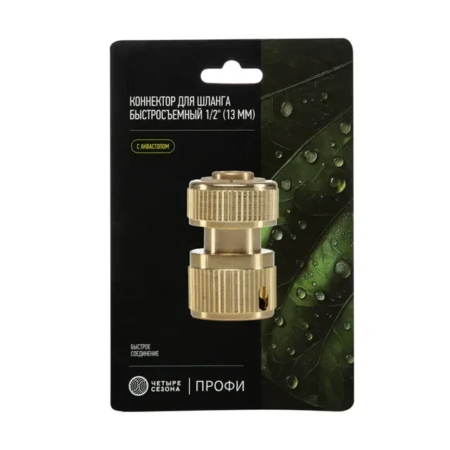 Коннектор для шланга латунный, быстросъемный, 1/2", с аквастопом ЧЕТЫРЕ СЕЗОНА