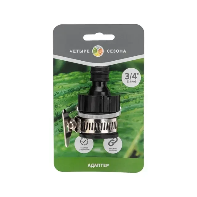 Адаптер пластмассовый, 3/4", с внешним хомутом ЧЕТЫРЕ СЕЗОНА