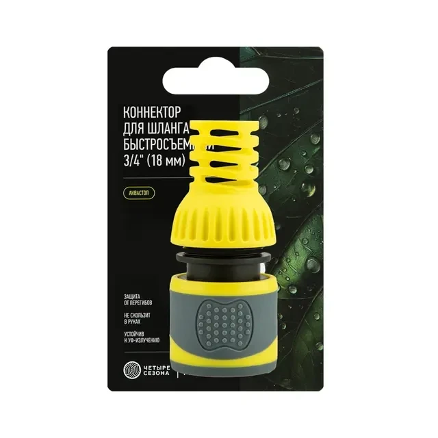 Коннектор для шланга, быстросъемный 3/4" с аквастопом, термопластичной резиной и защитой от перегибов Профи ЧЕТЫРЕ СЕЗОНА