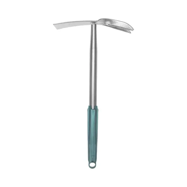 Мотыжка используется при выполнении работ в садах, огородах, цветниках и т.д. Применяется для рыхления почвы, формирования рядов для посева, прополки сорняков и многого другого. Рабочая часть и рукоятка выполнены из метала с порошковым покрытием, благодаря чему грабли обладают долговечностью, прочностью и надежностью. Конструктивно рабочая часть состоит из лопатки и 3 витых зубцов. Cверху рукоятка покрыта пластиком, что препятствует скольжению инструмента в руке и создает комфорт при выполнении работ. Также в рукоятке предусмотрено отверстие, позволяющее размещать мотыжку на вертикальных поверхностях, что обеспечивает удобство хранения и позволяет экономить место на рабочем пространстве.