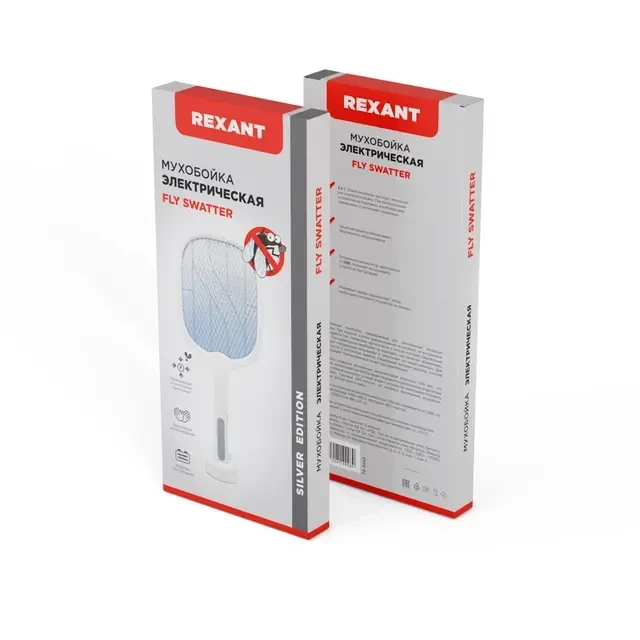 Электрическая мухобойка REXANT с габаритами 22х3х52 см выполнена в виде ракетки для бадминтона. При нажатии кнопки, расположенной на рукоятке, во внутренней сетке возникает малый разряд тока (1000 В). В результате насекомое при контакте с сеткой получает смертельный удар. Такой способ уничтожения комаров не оставляет следов на стенах и потолке. Электромухобойка подходит для использования дома и на загородном участке, а также незаменима в туристических походах. Имеет встроенный аккумулятор (1200 мАч), заряжается от станции, которая входит в комплект. Подключается к сети с помощью USB-провода (приобретается отдельно). Вес: 341 г.