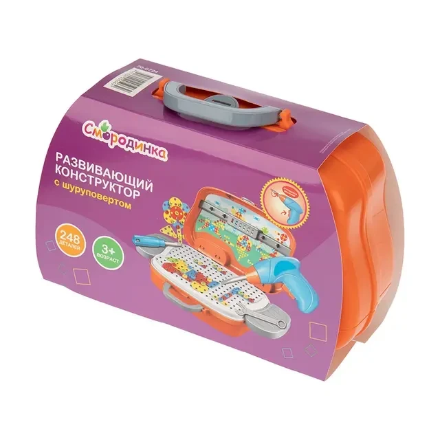 Развивающий детский конструктор Смородинка надолго увлечет малыша, а тем временем, мама сможет заняться своими делами или отдохнуть. Конструктор понравится как мальчикам, так и девочкам благодаря множеству ярких деталей и возможности воплотить свою уникальную идею на плоскости или в качестве 3D модели. Набор развивает мелкую моторику рук и творческое мышление. В состав набора входят: конструктор, чемодан на колесиках для удобного перемещения и компактного хранения деталей (приучает соблюдать порядок), разноцветная мозаика, отвертка, шуруповерт с реверсом (для удобного закручивания и раскручивания шурупов), гаечный ключ, инструкция. Инструменты работают от батареек типа АА (батарейки в комплект не входят). В комплекте 248 деталей, которые выполнены из высококачественного гипоаллергенного ABS-пластика. Размер: 29х9х20,5 см.