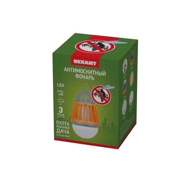 Антимоскитный инсектицидный кемпинговый фонарь REXANT сочетает в себе сразу 2 прибора: кемпинговый фонарь и уничтожитель насекомых. Прибор привлекает насекомых ультрафиолетовым свечением и мгновенно убивает их током. Может использоваться как внутри помещений, так и снаружи, например, для освещения палатки, беседки или просто как фонарь, благодаря влагозащищенному корпусу. Изделие имеет разные уровни яркости: слабый, средний и мощный. При помощи специальной насадки можно регулировать тип света: направленный или рассеянный. Обладает емким аккумулятором и заряжается от сети 220 В, ноутбука, Power Bank и любых других устройств, на которых есть USB-порт. От аккумулятора устройство работает до 20 часов в режиме фонаря и до 30 часов в режиме уничтожителя.