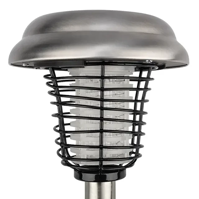 Антимоскитный инсектицидный садовый светильник сочетает сразу два устройства в одном: уничтожитель летающих насекомых и светильник для подсветки газонов, цветников и дорожек. Принцип действия электрического уничтожителя основан на использовании ультрафиолетового излучения в специальном диапазоне (350-400 нм). Многих летающих насекомых привлекает данный диапазон УФ-излучения. Подлетая к лампе, москиты замыкают собой прутья металлической решетки под напряжением и погибают от электрического разряда. Решетка защищена от случайного прикосновения, поэтому устройство безопасно для человека и домашних животных. Садовый светильник заряжается от солнечной панели на крышке и имеет встроенный аккумулятор, от которого работает ночью. Отсутствие внешних проводов делает данный светильник простым в установке и мобильным в перемещении. Светильник работает от встроенного аккумулятора до 10 часов. Вы можете установить светильник в землю при помощи колышка, который идет в комплекте, или подвесить при помощи кольца, которое расположено на крышке. Корпус устройства, выполненный из металла, имеет высокие эксплуатационные показатели, что объясняется его повышенной стойкостью к механическим повреждениям и защищенностью от факторов внешней среды.