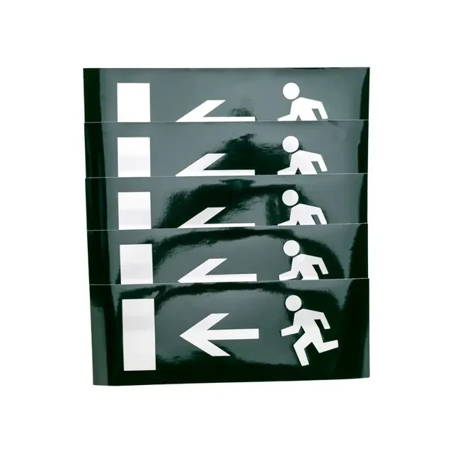 Наклейка для прозрачного аварийного светильника Арт 74-1310, размером 120*320мм. Наклейка выполнена из литой цветной пленки, которая имеет долгий срок службы и защиту от выцветания.
