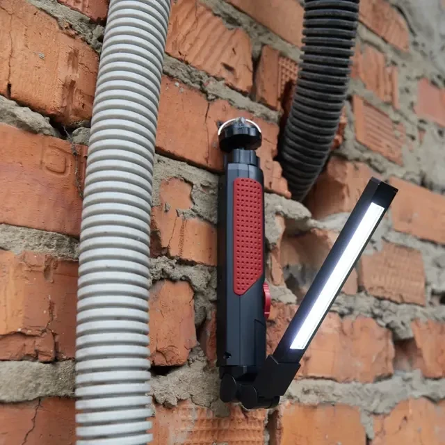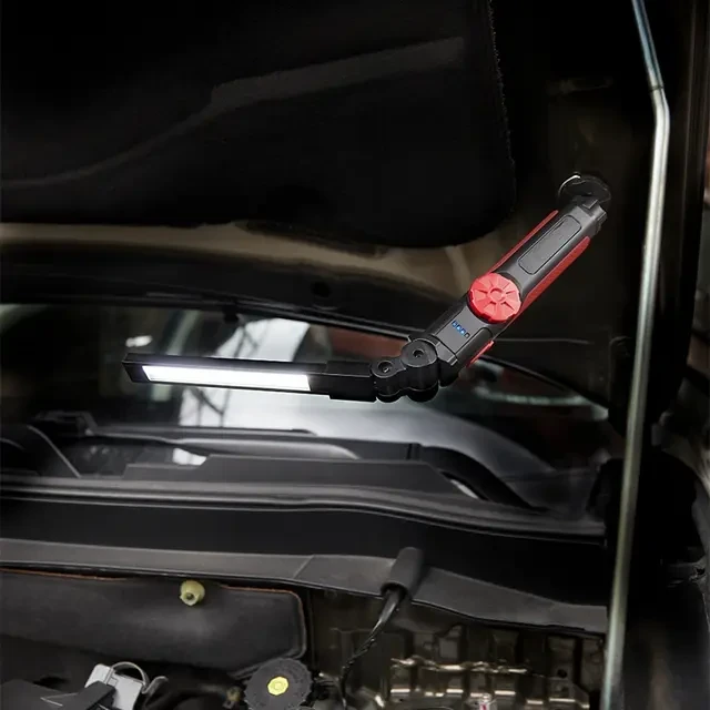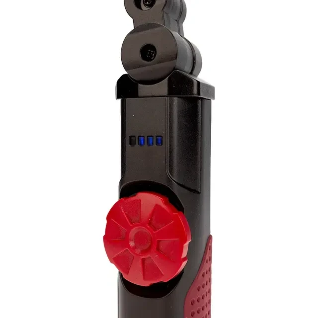 Автомобильный аккумуляторный светодиодный фонарь используется в гаражах и мастерских. Особенно полезен при необходимости ремонта в пути. Устройство оснащено удобной петлей для подвеса, а также магнитом, который предполагает возможность размещения на любой металлической поверхности. Благодаря шарниру корпус можно поворачивать вокруг оси на 360 градусов, что позволяет с удобством менять направление света, без необходимости перестановки изделия. Дальность луча составляет 30 м, что обеспечивает хорошую видимость, даже если фонарь находится на некотором расстоянии от рабочего места. Предусмотрен регулятор для изменения уровня яркости в зависимости от потребностей. Зарядка устройства осуществляется через прикуриватель авто от USB-кабеля длиной 100 см, который поставляется в комплект. Встроенный индикатор предупреждает о необходимости своевременной подзарядки фонаря. Размер изделия в сложенном виде – 36х36х 212 мм, в разложенном виде – 36х36х395 мм. Внимание! Не включайте фонарь во время зарядки.