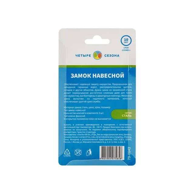 Описание ЧЕТЫРЕ СЕЗОНА 79-0043 - Купить Замок навесной серия Сталь