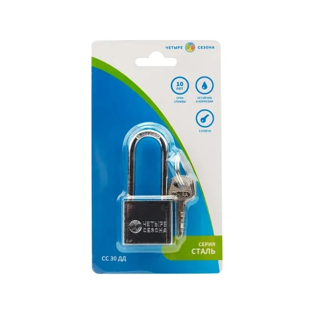 Замок навесной серия Сталь 30мм длинная дужка ЧЕТЫРЕ СЕЗОНА