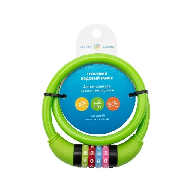 Замок тросовый кодовый взломостойкий для велосипедов и колясок 65см зеленый ЧЕТЫРЕ СЕЗОНА