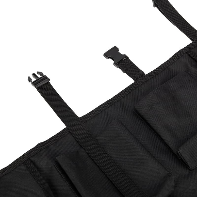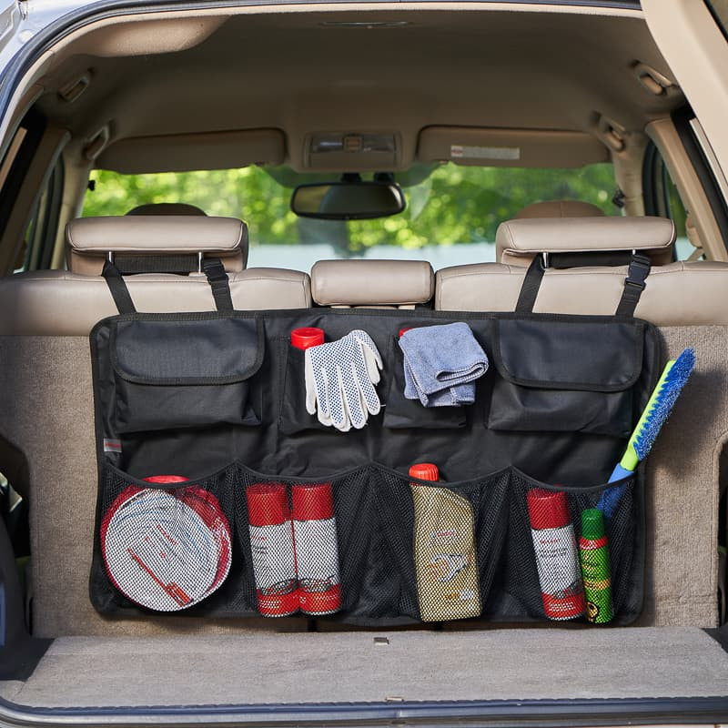 Органайзер на спинку заднего сиденья (большой) – это функциональный аксессуар, разработанный для организации и хранения различных предметов в багажнике автомобиля. Изделие представляет собой прочный и просторный органайзер, который крепится за подголовники спинки заднего сиденья (закрывает всю площадь спинки). Органайзер оснащен 8 вместительными карманами различных размеров, что позволяет удобно разместить много предметов. Изготовлен из износостойкого и прочного материала, который легко чистится от пыли, грязи или пятен.