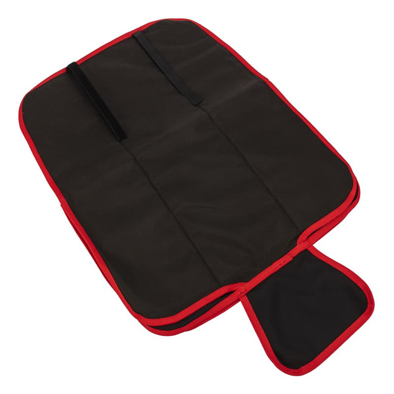 Накидка с высокой спинкой изготовлена специально для подложки под детское автокресло. Используется для защиты заднего сидения от повреждений и служит барьером между детскими ножками и сиденьем, предотвращая появление царапин или загрязнений на его поверхности. Накидка изготовлена из прочного и легко моющегося полиэстера. Внутри накидки находится подложка из вспененного полиэтилена, которая защищает тканевую или кожаную обивку сидений от деформации (замятия) и различного рода загрязнений. Накидка имеет универсальное крепление – липучку, благодаря чему легко фиксируется на сидении. В передней части накидки расположены карманы для мелких предметов и различных мелочей, которые могут понадобиться во время поездки. Вы сможете разместить в них игрушки, бутылочку с водой, салфетки или другие предметы.