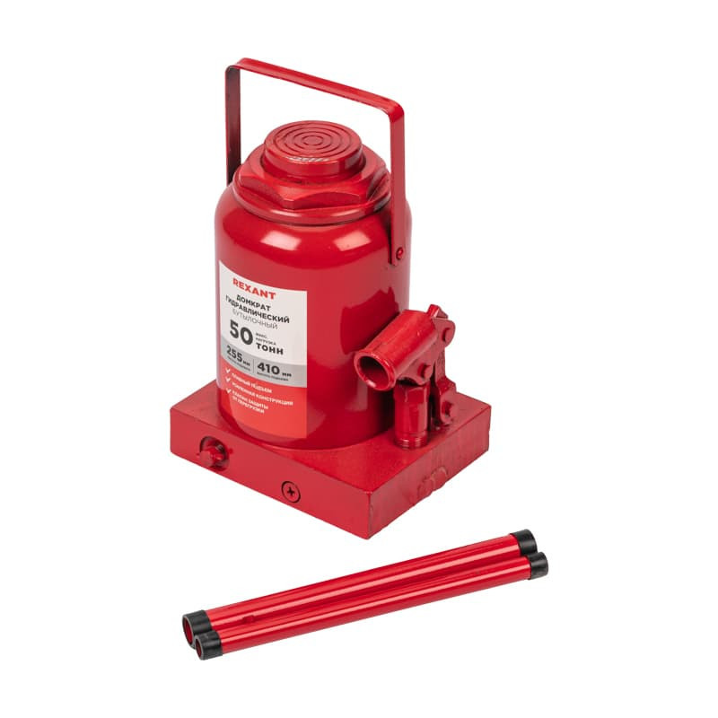 Гидравлический бутылочный домкрат REXANT предназначен для поднятия грузов массой до 50 тонн на высоту до 410 мм. Оптимален для автомобилей с большим клиренсом. Оснащен гидравлической системой, обеспечивающей высокую мощность и надежность. Домкрат станет незаменимым помощником как для автолюбителей, так и для профессионалов на СТО. Отличается плавностью хода, надежностью и жесткостью конструкции. Клапан безопасности предотвращает подъем груза тяжелее 50 т, предохраняя домкрат от поломки. Максимальная нагрузка – 50 т. Высота подхвата – 255 мм. Высота подъема – 410 мм. Материал корпуса – сталь, чугун.
