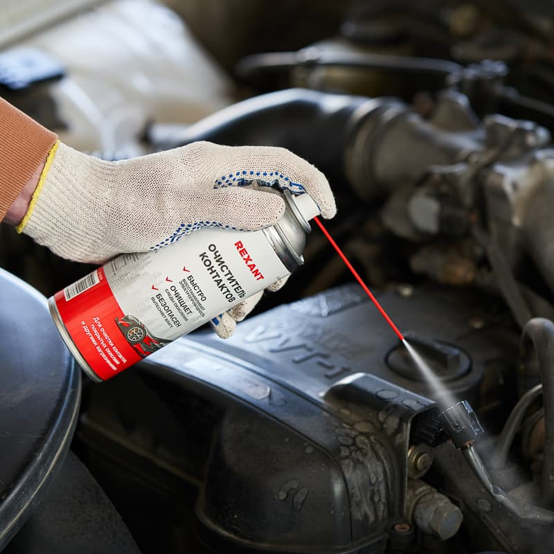 Очиститель контактов REXANT – Предназначен для очистки контактов, покрытых окислами и решения проблем в электрических цепях, вызванных не только коррозией, но и топливными и прочими загрязнениями, формирующими на поверхности контактов низкоэлектропроводные покрытия. Быстро испаряется. Безопасен для резины, винила и пластика. Не содержит токсичного перхлорэтилена. Специальная аэрозольная головка формирует мощную струю направленного действия. Перед применением следует энергично встряхнуть баллон в течение 1-2 минут и обильно нанести средство на обрабатываемые контакты для достижения эффекта промывки. При сильных загрязнениях рекомендуется повторное применение. Излишки очистителя, окислы и грязь следует удалить мягкой ветошью. Перед подключением контактов рекомендуется дать очистителю испариться. Перед использованием необходимо отключить электрические устройства от источников питания.
