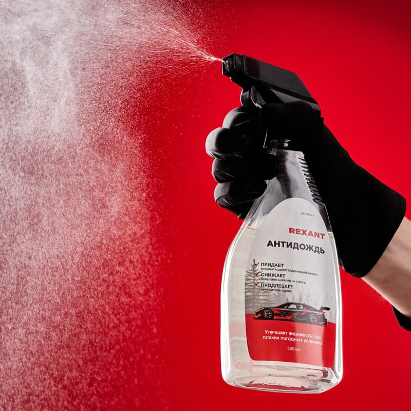 Антидождь – это специальное водоотталкивающее средство для защиты стекол, зеркал, фар автомобиля и пластиковых визоров мотоциклетных шлемов. При нанесении состав тонким слоем ложится на поверхность стекла, образуя идеально гладкое прозрачное, гидрофобное покрытие, на котором капли воды не удерживаются и скатываются под действием собственного веса или потока воздуха. Образуемая пленка значительно снижает сцепление водяных капель или грязи с поверхностью. При скорости выше 40 км/ч капли скатываются, оставляя стекло прозрачным, что обеспечивает лучшую видимость на дорогах даже при сложных погодных условиях. Также благодаря использованию средства стекло дольше остается чистым. Объем – 500 мл.