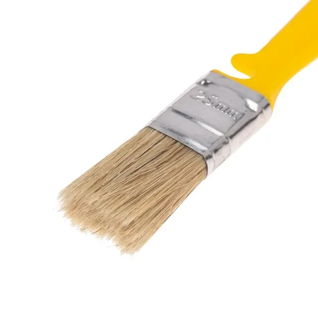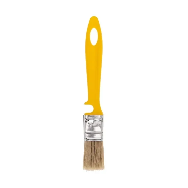 Кисть REXANT «Эмали» – самая востребованная для всех распространенных работ с агрессивными лакокрасочными материалами: радиаторы, трубы, деревянные окна и так далее. Они рекомендованы к применению для фасадных работ и работ с древесиной. Светлая натуральная щетина позволяет равномерно распределить лакокрасочные материалы на любой поверхности. Эргономичная пластиковая ручка кисти удобна в применении. Технические характеристики: Тип: кисть плоская Размер кисти: 25х10 мм Длина щетины: 44 мм Длина ручки: 120 мм Материал рукояти: пластик Материал бандажа: металл Щетина: натуральная