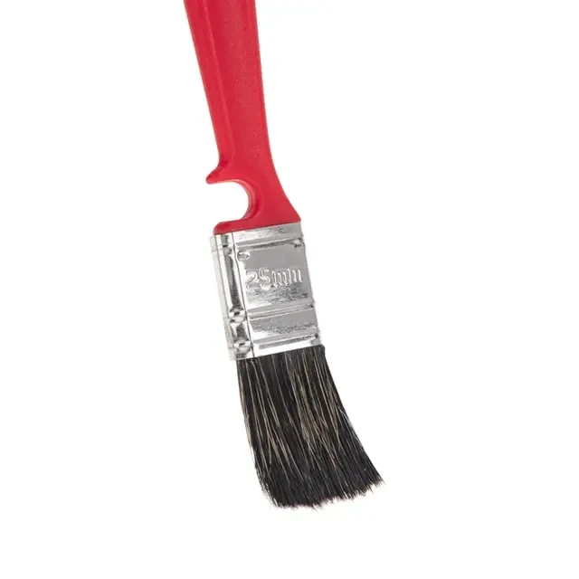 Кисть «Водные краски» произведена для покраски, подводки или ремонта поверхностей, нуждающихся в нанесении лакокрасочных материалов на водной основе. Премиальная щетка создана из смеси натуральной и искусственной щетины и является идеальным решением для всех покрасочных работ. Технические характеристики: Тип: кисть плоская Размер кисти: 25х10 мм Длина щетины: 51 мм Длина ручки: 120 мм Материал рукояти: пластик Материал бандажа: металл Щетина: смешанная