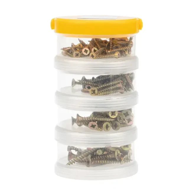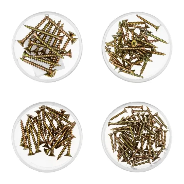 Набор саморезов используется для крепления тонколистового металла, древесно-стружечных и гипсокартонных плит, брусьев, досок, полимерных ламелей к деревянным основаниям без предварительного сверления. В комплексе с пластиковым дюбелем универсальные саморезы (PZ) DIN 7962 могут использоваться для крепления к бетону, кирпичу, шлакоблоку. Саморезы изготовлены из стали, покрытой желтым цинком, что обеспечивает изделиям высокую прочность и долговечность. Набор состоит из 140 саморезов для ДСП, которых хватит для выполнения множества задач. Поставляется в практичном сборном пластиковом органайзере. Органайзер состоит из отдельных контейнеров, соединенных между собой с помощью винтовой резьбы, что упрощает хранение и организацию крепежа. Такой дизайн позволяет легко находить и использовать нужные саморезы и поддерживает порядок в крепеже. Органайзер может в дальнейшем использоваться для хранения других крепежных элементов. Набор состоит из саморезов 3,0×19 (60 шт.); 3,5×25 (40 шт.); 4,0×30 (25 шт.); 4,5×40 (15 шт.).