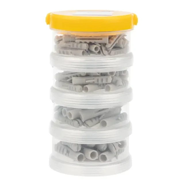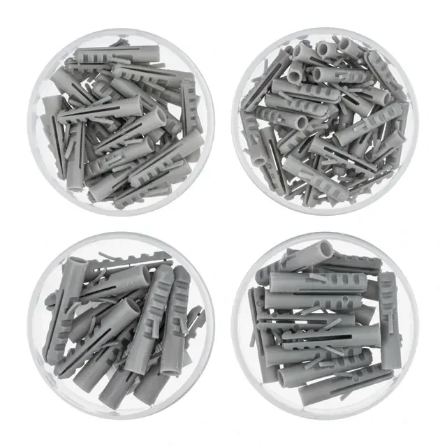 Набор распорных дюбелей используется при выполнении строительных и монтажных работ для крепкой и устойчивой фиксации крепежа во всех видах полнотелых материалов: бетоне, железобетоне и кирпиче. Специальные зубцы и блокировочные язычки обеспечивают максимальную силу трения в основании, препятствуя проворачиванию и вырыванию крепежа. При закручивании винта или шурупа тело дюбеля расширяется по всему диаметру и длине, что усиливает распорное давление и позволяет выдерживать увеличенные нагрузки. Набор состоит из 90 крепежных элементов, которых хватит для выполнения множества задач. Поставляется в практичном сборном пластиковом органайзере. Органайзер состоит из отдельных контейнеров, соединенных между собой с помощью винтовой резьбы, что упрощает хранение и организацию крепежа. Такой дизайн позволяет легко находить и использовать нужные дюбели и поддерживает порядок в крепеже. Органайзер может в дальнейшем использоваться для хранения других крепежных элементов. Набор состоит из дюбелей ⌀5 (40 шт.); ⌀6 (25 шт.); ⌀7 (15 шт.); ⌀8 (10 шт.).