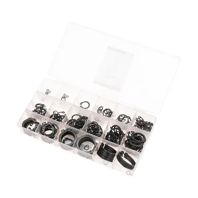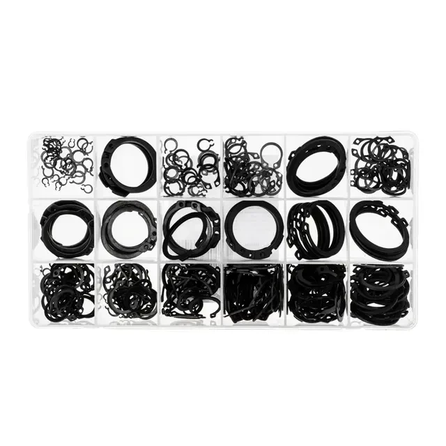 Набор наружных стопорных колец DIN 471 используется для фиксации подшипников качения и других деталей на вращающихся валах. Кольца удерживают детали, предотвращая их осевое смещение. Устанавливаются с помощью специальных клещей. Стопорные кольца различных диаметров подходят для работы с механизмами в самых разных областях: от строительной и сельскохозяйственной техники до бытовых приборов. Стопорные кольца изготовлены из высококачественной стали, обработанной методом горячего цинкования, что обеспечивает высокую прочность и долговечность. Набор состоит из 300 крепежных элементов, которых хватит для выполнения множества задач. Поставляется в пластиковом органайзере, который помогает не только удобно хранить изделия, но и быстро находить крепеж нужного размера. Органайзер может в дальнейшем использоваться для хранения других крепежных элементов. Набор состоит из стопорных колец 3 мм (20 шт.); 4 мм (10 шт.); 5 мм (15 шт.); 6 мм (25 шт.); 8 мм (15 шт.); 10 мм (20 шт.); 11 мм (15 шт.); 12 мм (15 шт.); 13 мм (25 шт.); 14 мм (15 шт.); 16 мм (20 шт.); 19 мм (25 шт.); 21 мм (15 шт.); 22 мм (20 шт.); 25 мм (15 шт.); 27 мм (15 шт.); 28 мм (10 шт.); 32 мм (5 шт.).
