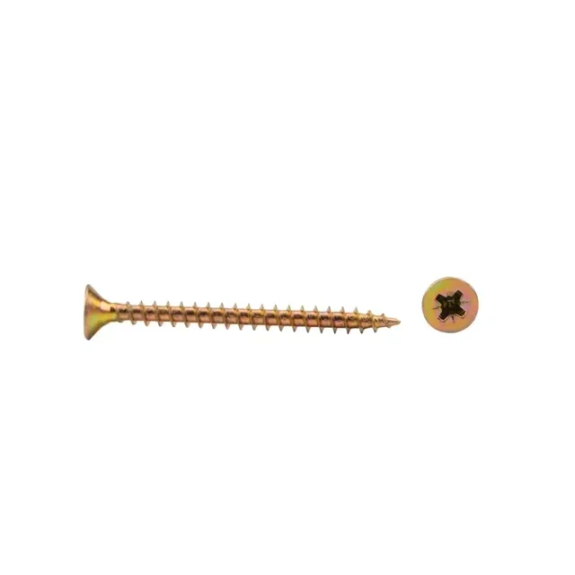 Универсальный саморез 4,5х50 мм со шлицем типа PZ предназначен для проведения крепежных работ: сборки деревянных конструкций, мебели, сантехнических и электротехнических изделий, крепления к металлическим изделиям (с предварительным сверлением). Саморезы изготовлены из стали и обработаны методом желтопассирования, благодаря чему надежно защищены от коррозии и механических повреждений. Потайная головка полностью погружается в материал и не выступает над его поверхностью, оставляя ее гладкой и ровной. Могут быть использованы совместно со всеми видами дюбелей, так как резьба имеет подходящий шаг. Поставляются крафтовой коробке в количестве 200 штук - такого количества саморезов хватит для выполнения небольшого объема ремонтных и монтажных работ в доме или на даче.