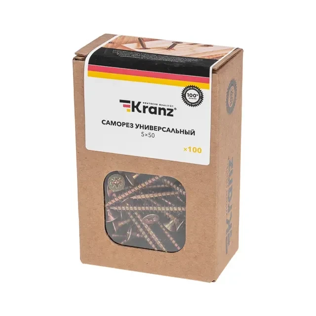 Саморез универсальный 5,0х50 мм, желтый цинк, короб (100 шт/уп) KRANZ