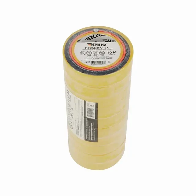 Изолента ПВХ 0,13х15мм, 10м, желтая KRANZ