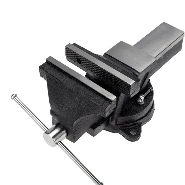 Слесарные тиски выполняют функцию фиксации деталей разных форм и размеров, без чего, практически, невозможна дальнейшая обработка изделия. Широко используются для резки, сверления, строгания, шлифования, сборки и разборки различных механизмов и узлов. Использование этого приспособления позволяет качественно выполнять работы сразу двумя руками. Обрабатываемую заготовку не нужно удерживать в определенном положении, мастер может полностью сконцентрироваться на выполнении конкретной задачи. Функция поворота позволяет расположить тиски относительно основания, выбирая наиболее удобное положение, что расширяет возможности обработки. Предусмотрена наковальня.