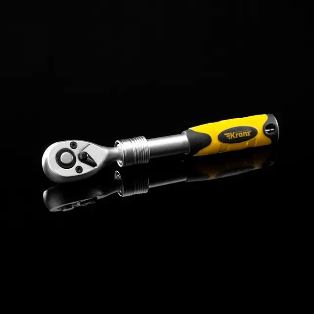 Телескопический хромированный трещоточный ключ KRANZ предназначен для монтажных работ с резьбовыми соединениями. Инструмент оснащен присоединительным квадратом размером 1/4 дюйма, что позволяет подключать различные насадки и головки в зависимости от потребности. Телескопическая рукоятка обеспечивает легкую регулировку длины в диапазоне от 162 до 210 мм, что делает ключ удобным для работы в разных условиях. Механизм фиксации гарантирует надежную блокировку рукоятки на требуемой длине. Двухкомпонентная рукоятка создает комфортное и надежное удержание в руке, что позволяет эффективно передавать усилие и контролировать инструмент во время работы. Изделие выполнено из высококачественной стали CrV. Хромированная отделка придает инструменту привлекательный внешний вид, а также защищает поверхность от коррозии и износа.
