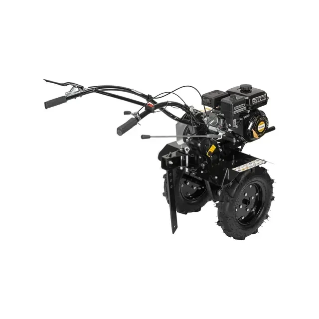 Мотоблок предназначен для рыхления, вспахивания, пропалывания почвы и других работ в поле, на огороде и придомовой территории. Четырехтактный двигатель объемом 212 см3 и мощностью 7 л. с, надежный карбюратор и воздушный фильтр обеспечивают стабильную работу и высокую производительность при обработке почвы. Тип моторного масла – SAE 5W30/SAE 10W40 (полусинтетическое). Мотоблок оборудован коробкой передач с 2 скоростями вперед и 1 назад, благодаря чему может использоваться на разном грунте. Механизм сцепления – ременной. Регулятор оборотов и выключатель зажигания расположены на рукоятках, которые для удобства регулируются в 2 плоскостях – вертикально и относительно продольной оси. Для идеального равновесия мотоблок отцентрован на заводе. 24 фрезы 3х4 из закаленной стали не нуждаются в дополнительной заточке. Для культивации земли вместо колес устанавливаются две фрезы. Сошник с регулировочными отверстиями обеспечивает выбор нужной глубины культивации (до 35 см). Защитные крылья предотвращают попадание почвы, камней и других объектов на оператора. Шкив отбора мощности и универсальный кронштейн диаметром 30 мм, расположенный на передней части, позволяют установить различное активное навесное оборудование: косилки, мульчеры и т. д. На задней части расположен кронштейн для крепления сцепки, через которую присоединяется плуг, окучник, картофелевыкапыватель и т. д. Комплектация: Мотоблок - 1 шт. Руководство по эксплуатации - 1 шт. Крыло защитное - 2 шт. Передняя соединительная планка крыльев - 1 шт. Задняя соединительная планка крыльев - 1 шт. Комплект фрез - 1 шт. Комплект осей для крепления фрез - 1 шт. Пневматическое колесо - 2 шт. Сцепка сошника - 1 шт. Сошник - 1 шт. Комплект крепежа - 1 компл. Чехол - 1 шт. Масло моторное - 1 л (подарок).