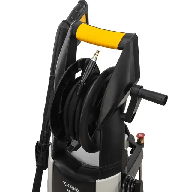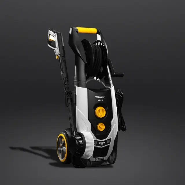 Мойка высокого давления KR-210 эффективно устраняет различные виды загрязнений при помощи струи воды под высоким давлением. Предназначена для бытового использования. Мощный двигатель 2600 Вт обеспечивает давление до 210 бар и производительность до 500 л/ч. Алюминиевая помпа гарантирует надежность и стабильное давление. Опция блокировки рычага пистолета исключает случайную подачу воды. При перегреве мотор отключается автоматически, что предотвращает его поломку. Фильтр тонкой очистки защищает компоненты мойки и очищаемую поверхность от повреждения мельчайшими твердыми частицами. Функция самостоятельного забора воды из емкости позволяет использовать мойку в местах без водопровода. Регулируемое сопло и сменные быстросъемные насадки с разными углами распыления (0, 15, 25, 40) позволяют изменять интенсивность струи, а также наносить моющие средства. Пеногенератор встроен в корпус мойки. Подача пены плавно регулируется поворотной рукояткой. Система полной остановки выключает двигатель при отпускании клавиши пистолета, что экономит энергию и увеличивает ресурс. Мойка отличается мобильностью благодаря кабелю длиной 5 м, удобной рукоятке и колесам. Усиленный армированный шланг длиной 8 м обеспечивает удобство использования. На корпусе мойки располагается держатель пистолета и распылителя, а также встроенный крюк для крепления провода. Предусмотрены быстросъемные коннекторы фиксации шланга и насадок.