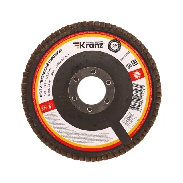 Круг лепестковый торцевой, P24, 115х22,2мм KRANZ