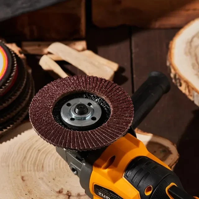 Лепестковый торцевой круг применяется совместно с ручными угловыми шлифовальными машинами (болгарками) соответствующего диаметра. Шлифовальные диски предназначены для предварительной, промежуточной и финишной обработки металла, дерева, пластика и других материалов. Конструктивная особенность кругов – веерное расположение лепестков абразивного материала, что обеспечивает плавную работу круга и отсутствие перегрева в зоне шлифования. Лепестковый круг изготовлен из шлифовальной шкурки на тканевой основе. Благодаря торцевому типу диска (T-29) увеличивается пятно контакта, что повышает скорость обработки поверхности и уменьшает возможность возникновения дефектов в виде зарезов, ям и прижогов. Тканевая основа лепестков равномерно изнашивается в процессе работы и открывает следующий слой абразива, позволяя полностью использовать ресурс круга. Наружный диаметр – 115 мм, посадочный – 22,2 мм. Max 12200 RPM.